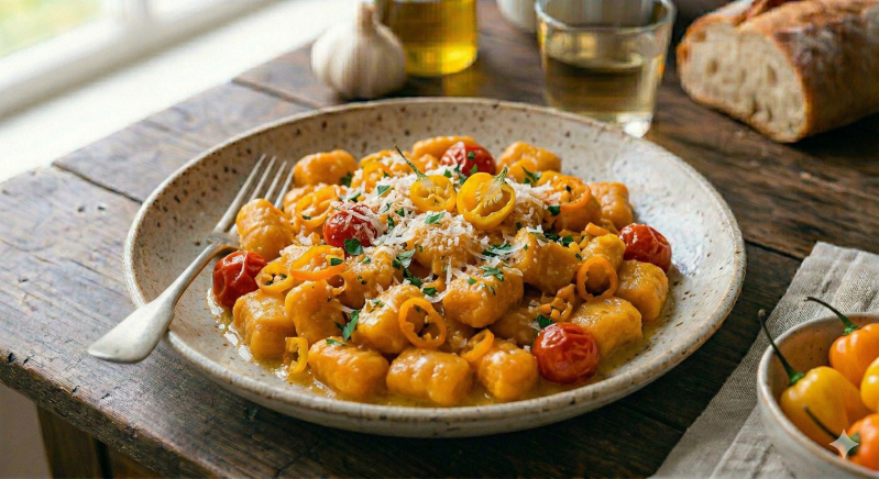 Gnocchi di Zucca con Burro e Habanero: Dolce e piccante estremo. 🎃